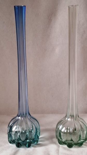 • Dois (2) vasos solifleur, no tom azul e verde, canelados na vertical, base redonda. Med. 30 cm alt.