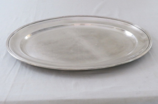 • WOLFF- Grande bandeja oval para banquete em metal espessurado a prata . Med. 56 x 40 cm.