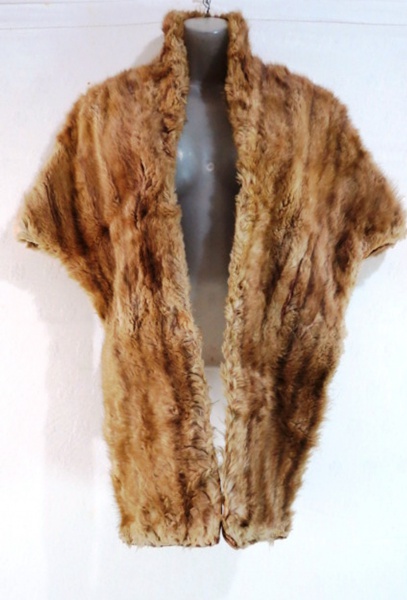 • Estola de pele natural com forro em cetim. Med. 24 x 110 cm.