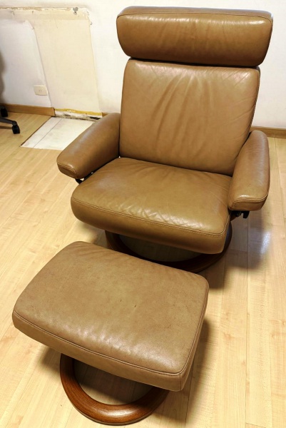 • NOVO AMBIENTE- Poltrona reclinável  ao gosto Percival Lafer  e puff para apoio dos pés, estofados em couro sintético, estrutura  em ferro e madeira. Med. poltrona 98 cm altura- puff 41 cm alt. RETIRADA COM AGENDAMENTO EM COPACABANA.