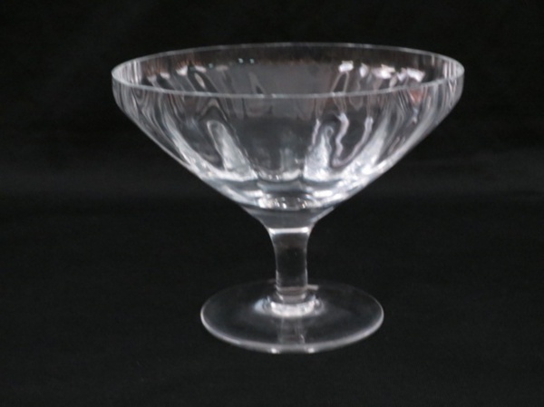 • Uveira alta redonda, em cristal translúcido, haste longa e bojo gomado. Med. 14 x 18 cm diâmetro.