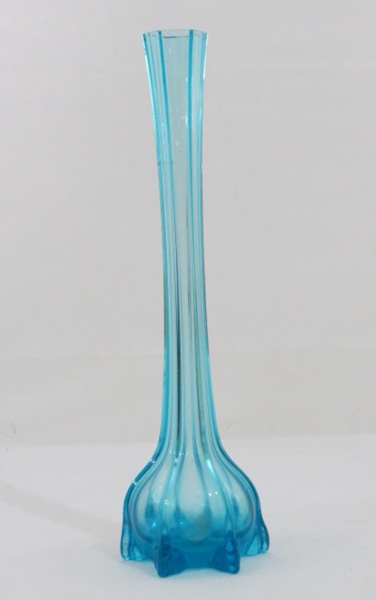 • Vaso solifleur, base redonda pinçada em vidro, haste alongada e facetada na cor azul. Med. 35 cm alt.