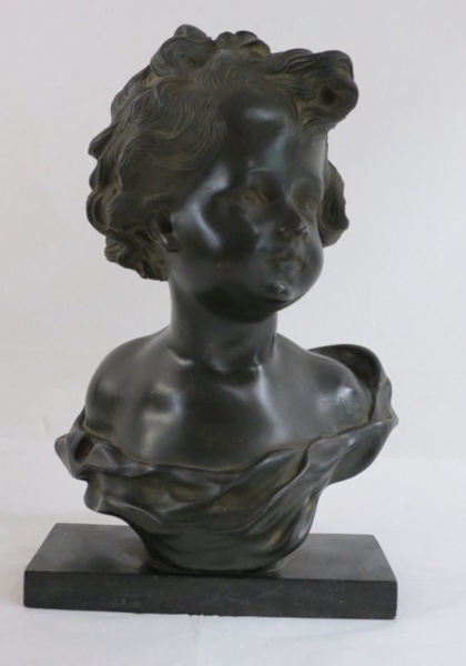 • ART NOVEAU- Escultura italiana em resina   representando delicado " Busto de menina ". Med. 34 cm alt x 22 cm diâmetro.