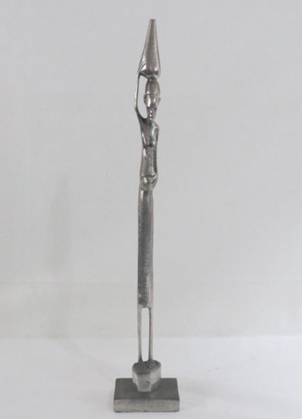 • ALÚMEN DESIGN- Escultura em aluminio polido representando " Nativa Africana". Selado. Med. 44 cm alt.