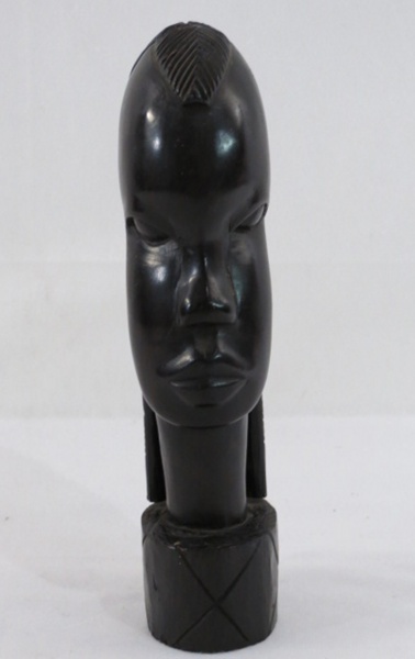 • ARTE TRIBAL AFRICANA, escultura em ébano  representando " Busto feminino", ricamente esculpida. Med. 24 cm alt.
