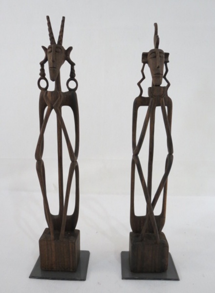 • ARTE TRIBAL AFRICANA- Par de esculturas em ébano, representando " Divindades Africanas" estilizadas. Md. 32 cm altura.