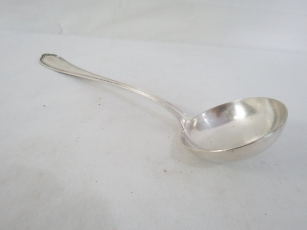 • CHRISTOFLE - Concha em metal prateado francês finamente decorada com volutas no cabo. Contrastada. Med. 34 cm comprimento.