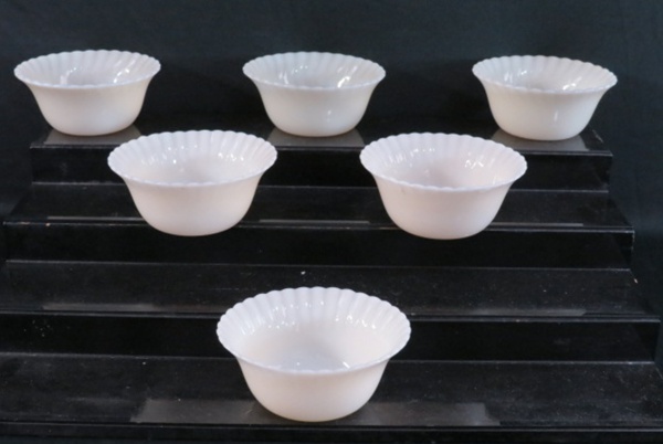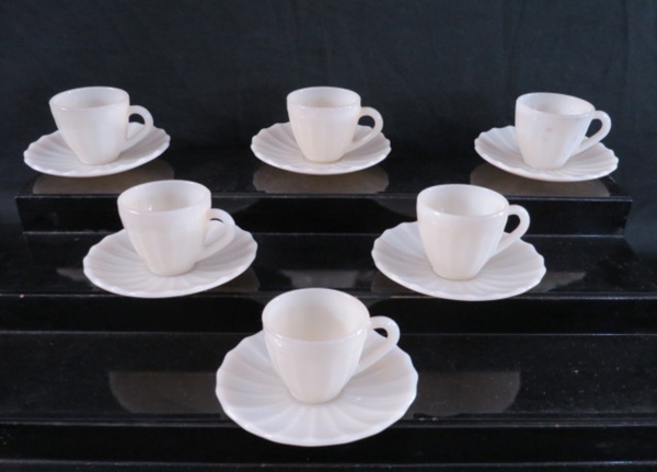 • COLOREX - Seis (06) xicaras para café em vidro leitoso, bojo canelado. Marcado no fundo. Alt. 5,5 cm.