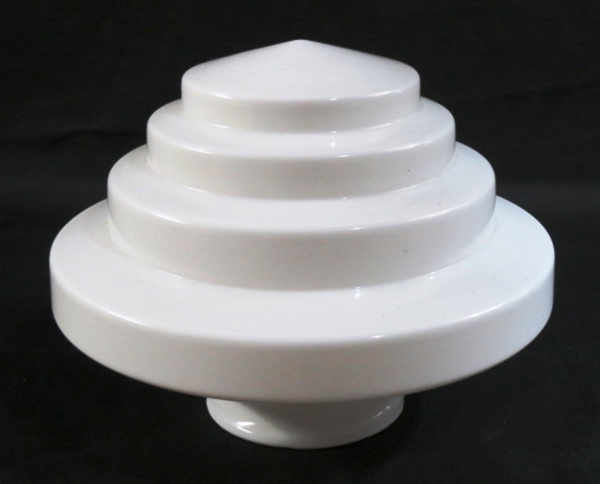 • ART DECÓ - Antiga Cúpula em vidro opalinado leitoso, na tonalidade branca , no padrão art decó, decoração em degraus, dito "escadinha". Dimensões: 19 cm X 24 cm.