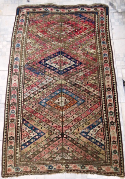 • Antigo Tapete Kasak. Necessita conserto ( rasgado). Med. 235 x 140 cm.